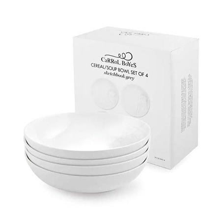 Part of the serene Sketchbook Grey range, this set features four distinctive illustrations by Carrol Boyes, rendered in subtle dove grey linework against a crisp white backdrop. Positioned within the inner-right side of the bowl, the artwork invites gourmet-style presentation and adds an expressive touch to your table.