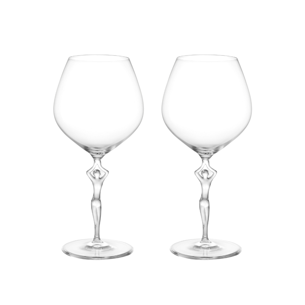 Indulge in elegance with the Connoisseur red wine glass set by Carrol Boyes. Hand-made and mouth-blown from the finest glass, each glass is a sculptural masterpiece designed for special occasions. The stem features a slender female figure, gracefully extending her arms to present the generous bowl—uniting function with iconic artistry.